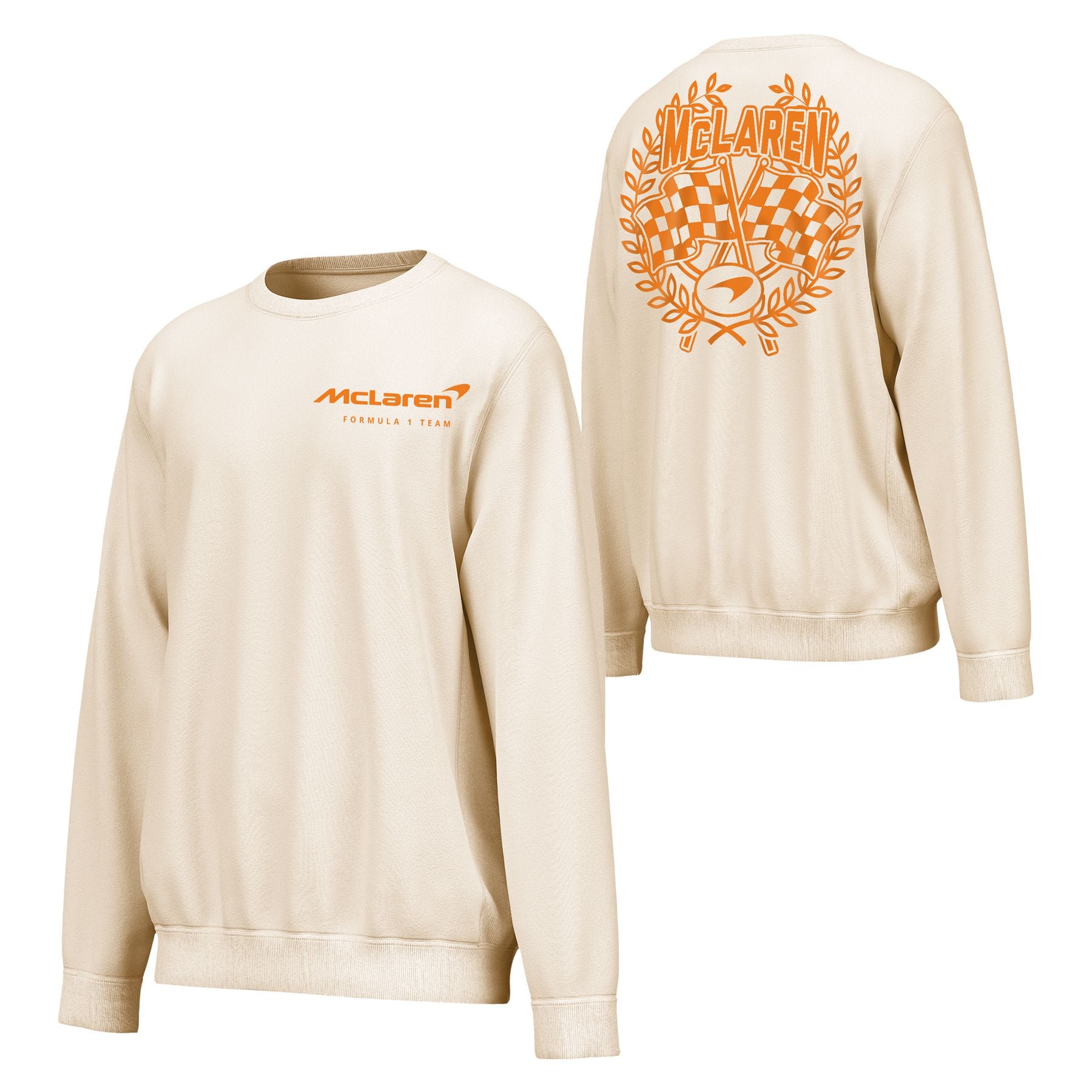 Stay comfortable while displaying your passion for the McLaren F1 Team with this Chasing Excellence Fleece Sweatshirt. The fleece lining provides an extra layer of warmth and comfort, making it perfect for cooler days at the track or relaxing at home. The bold screen print logo at the left chest and the large graphic on the back showcase your passion for the McLaren F1 Team and their relentless pursuit of excellence.
