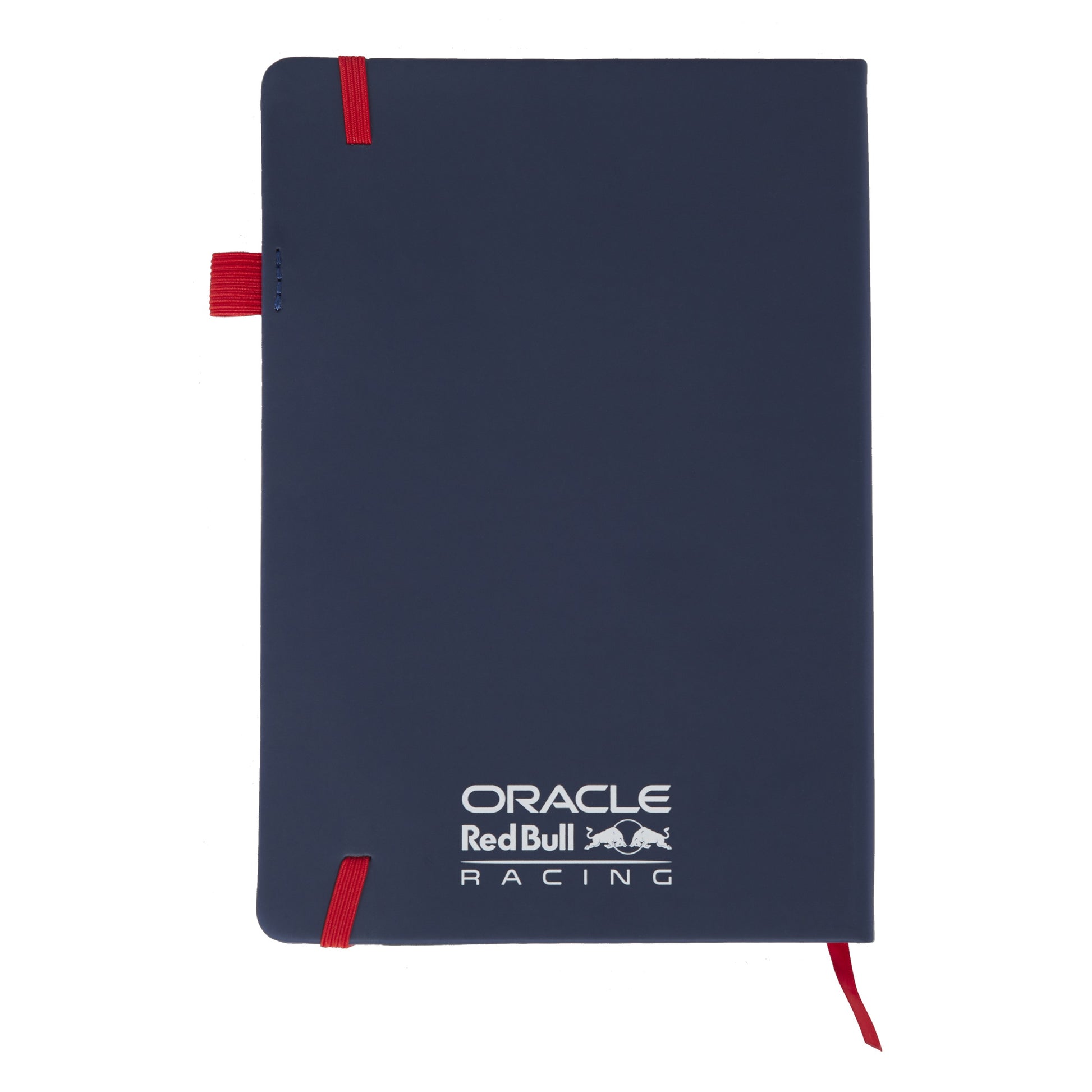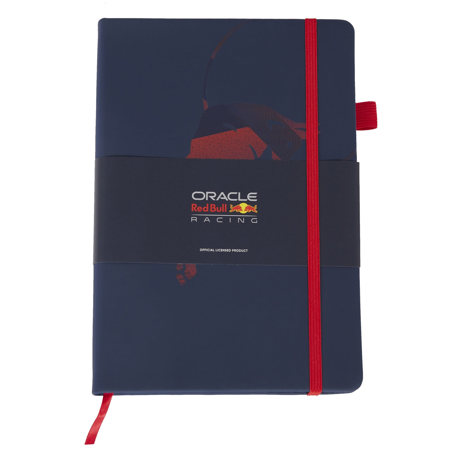 ORBR Notepad in Night Sky. Featuring a large Oracle Red Bull logo, a pen holder, a bookmark ribbon and a elastic book band, perfect for the Red Bull Formula One fan.