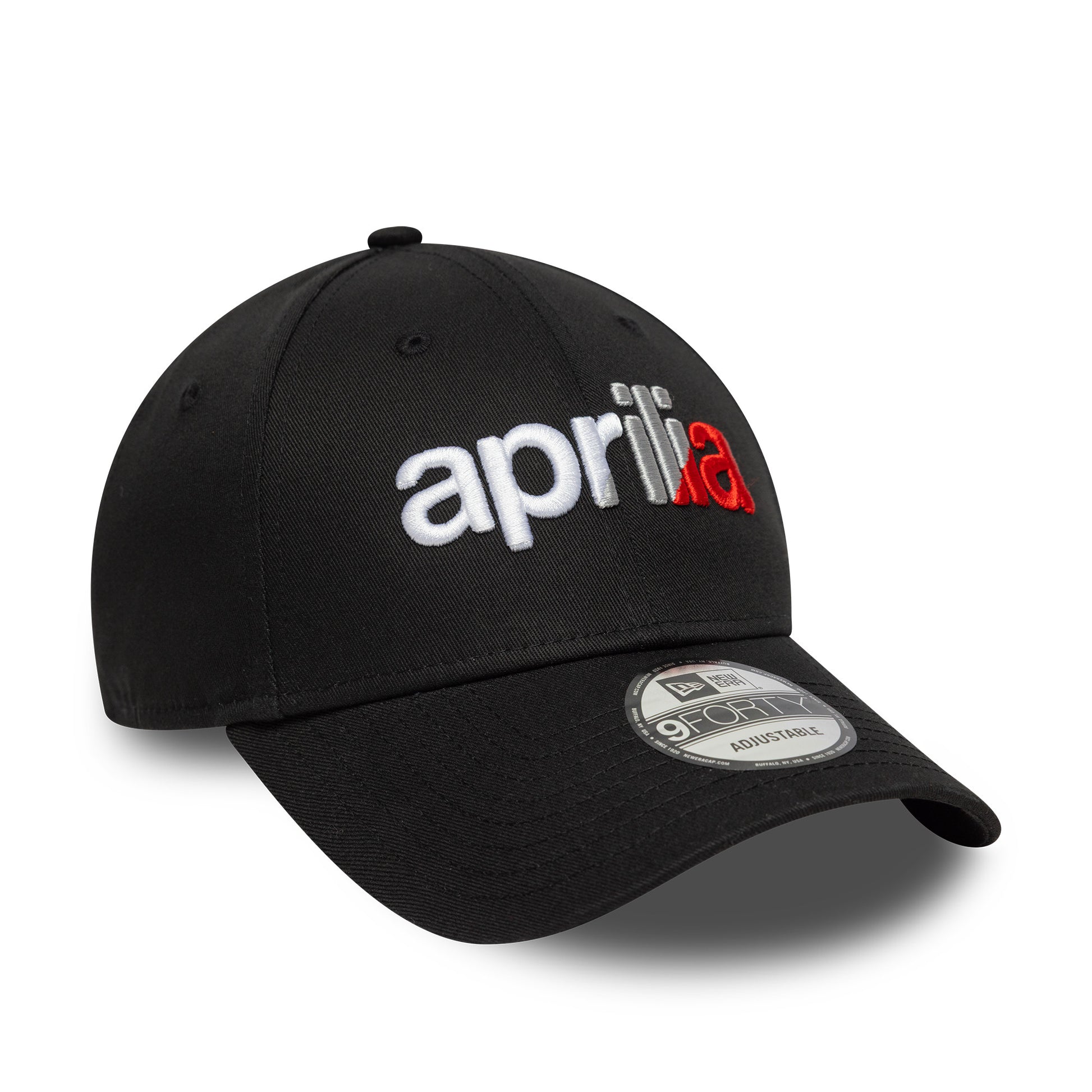 The Aprilia Wordmark Black 9Forty Adjustable Cap combines sleek Aprilia style with everyday comfort.