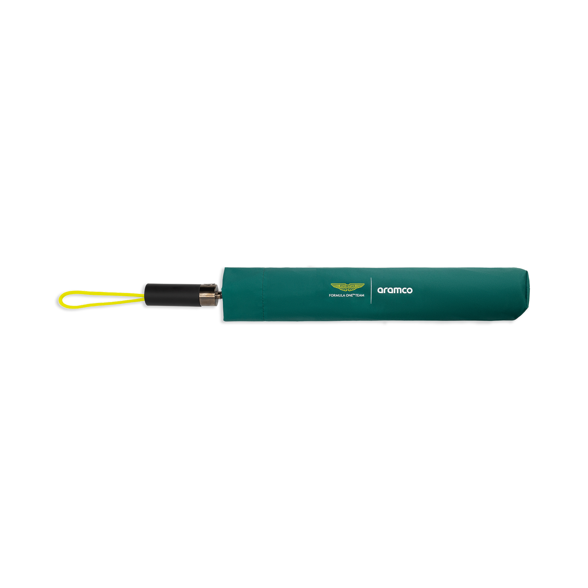 Stay dry in style with the Aston Martin F1 Umbrella in green. This unisex umbrella features durable construction, a large canopy, and official Aston Martin Formula One Team branding, making it perfect for race days or everyday use.