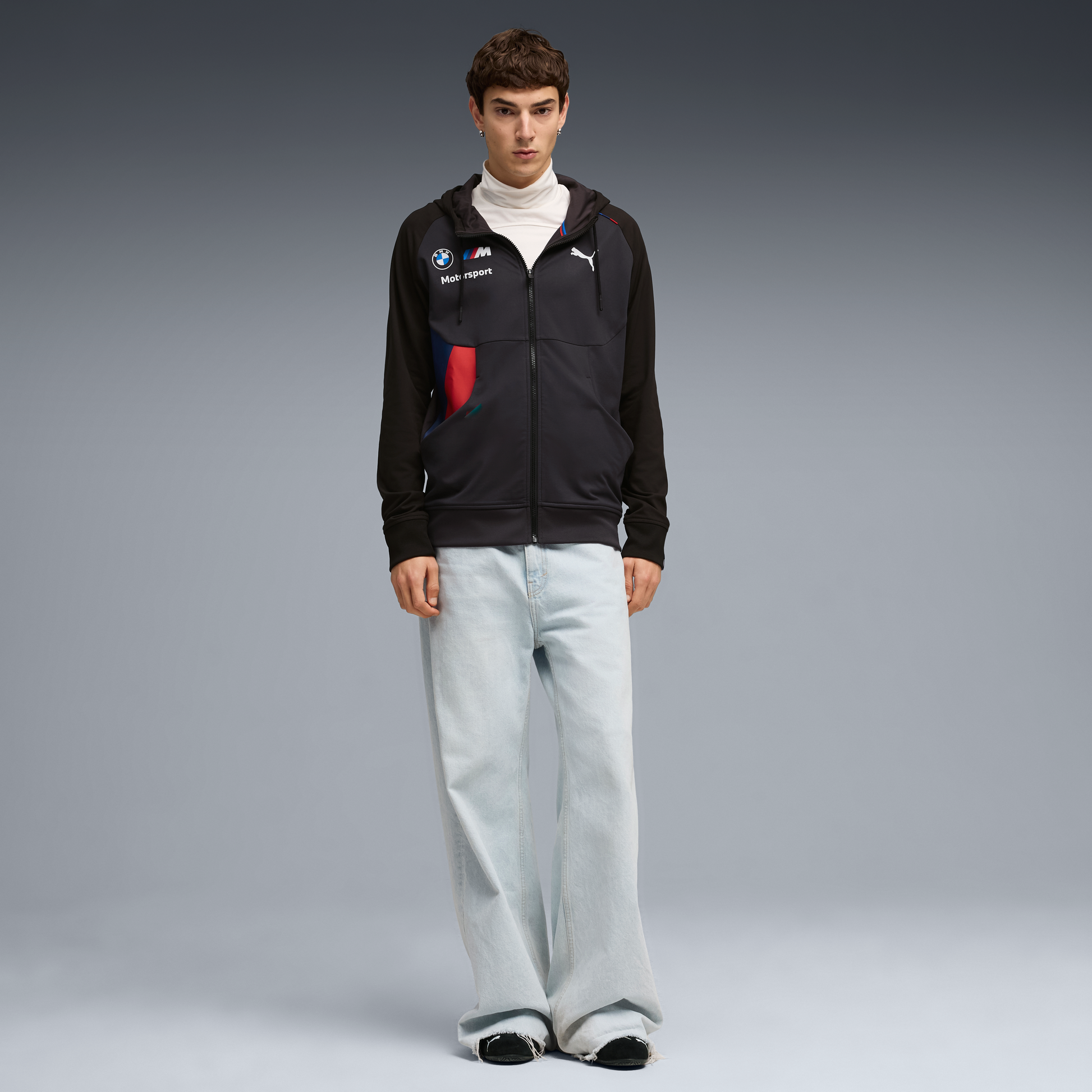 It features bold BMW Motorsport and PUMA branding, a cosy hood, and a modern athletic fit — perfect for race weekends, everyday wear or casual layering.