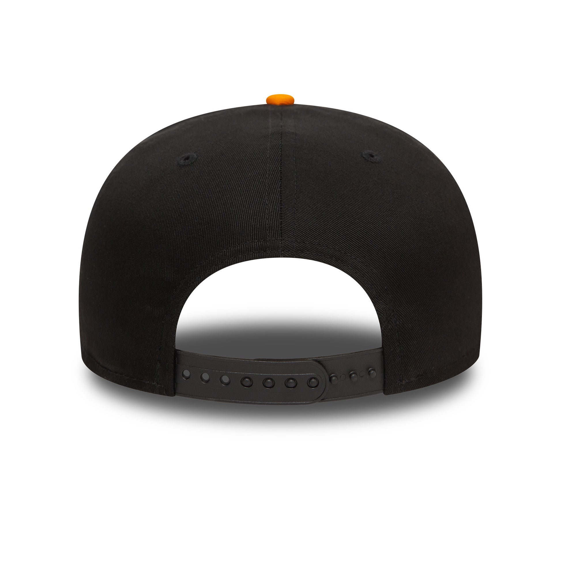 9Fifty cap with McLaren Racing Logo, historic papaya coloured peak and button with a snap closure. Made by and featuring the New Era Flag