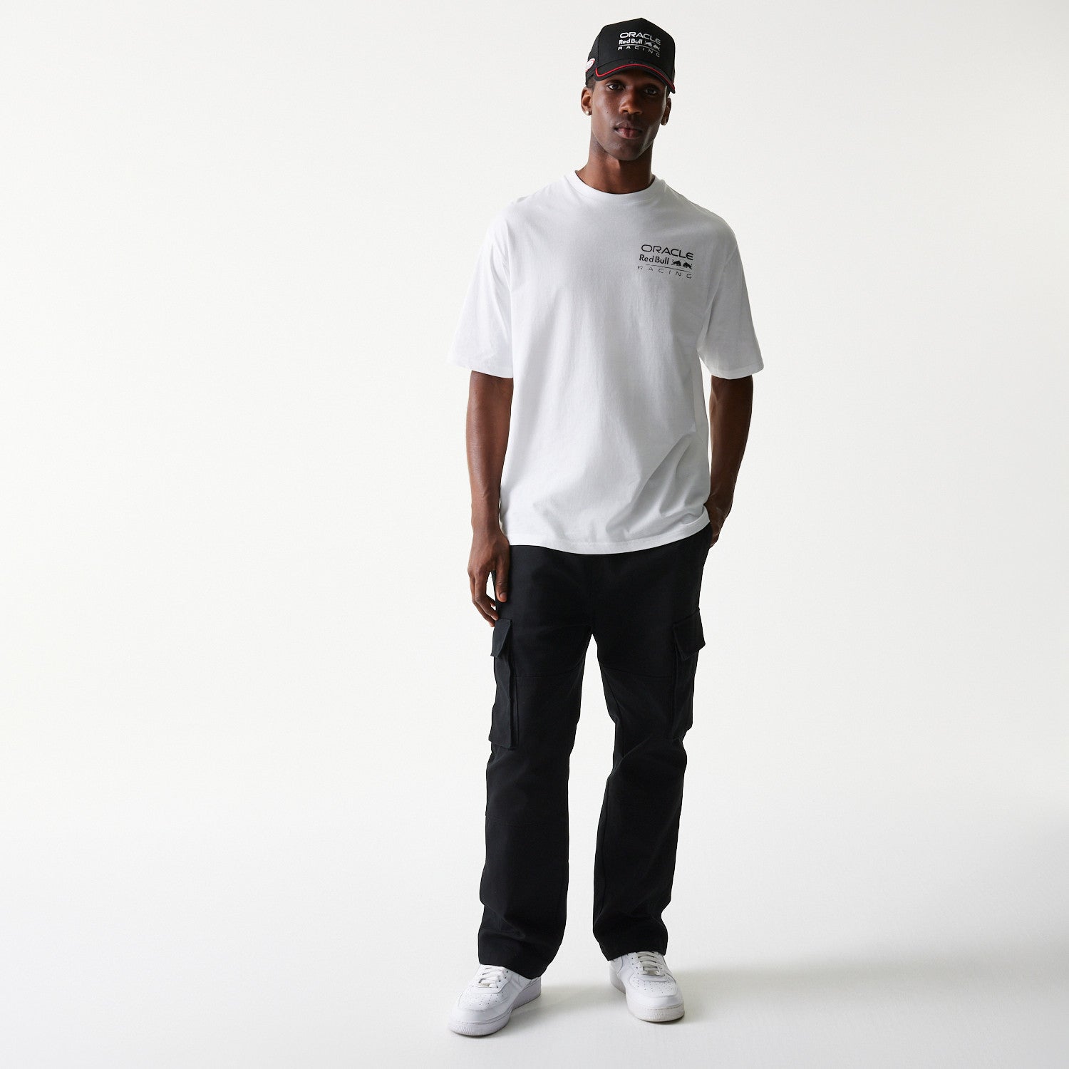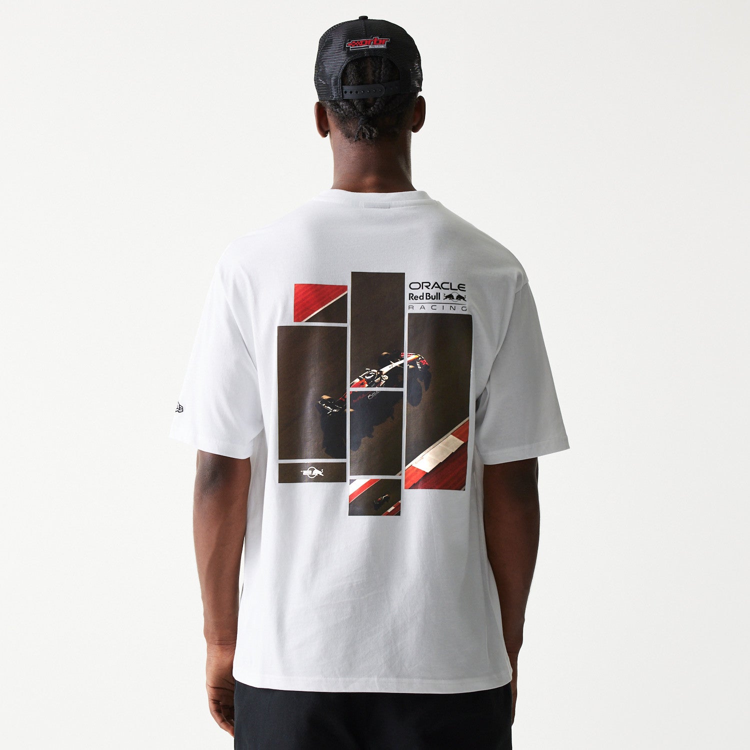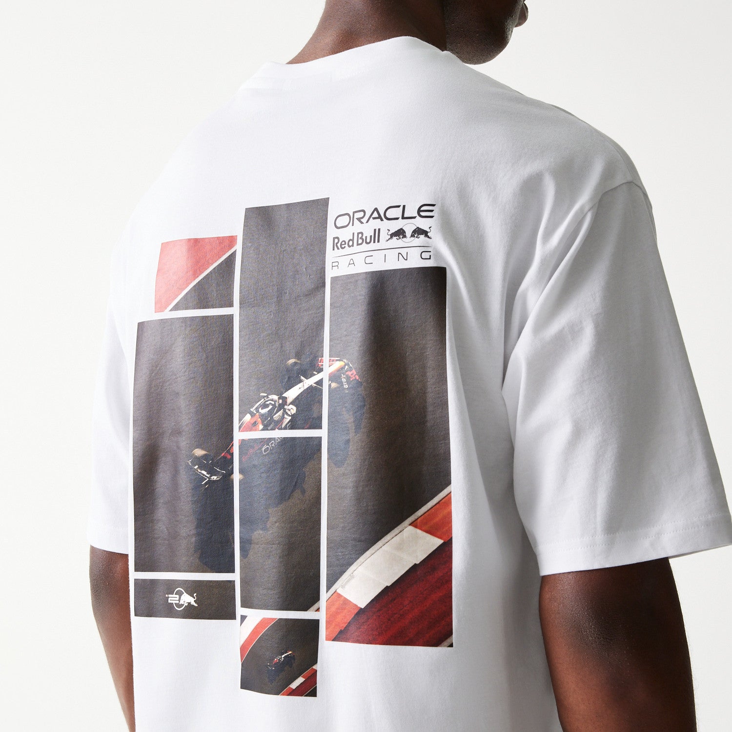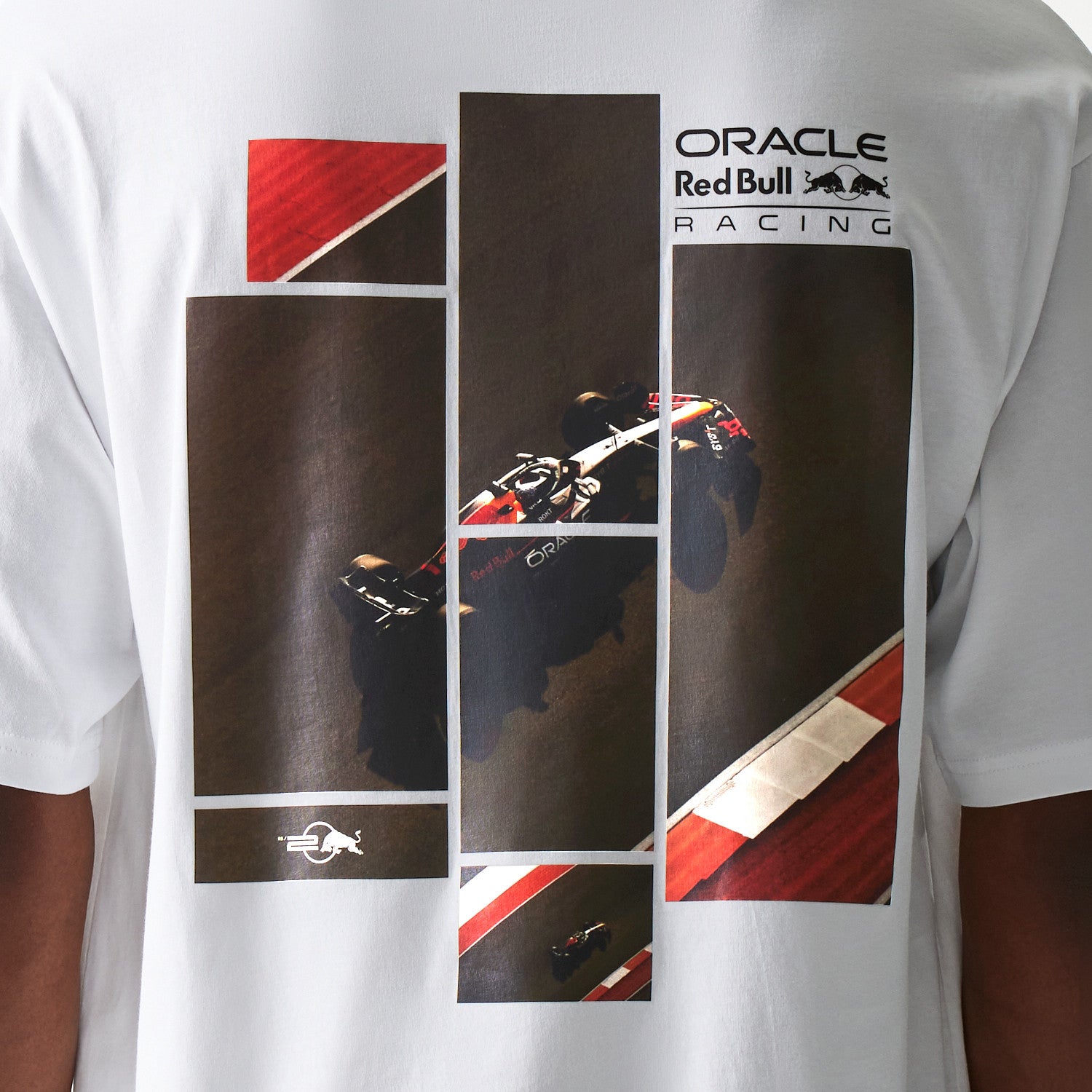 Red Bull F1 Team Graphic Tee. Oversized casual tee from the Red Bull Formula One Team. Available in black or white