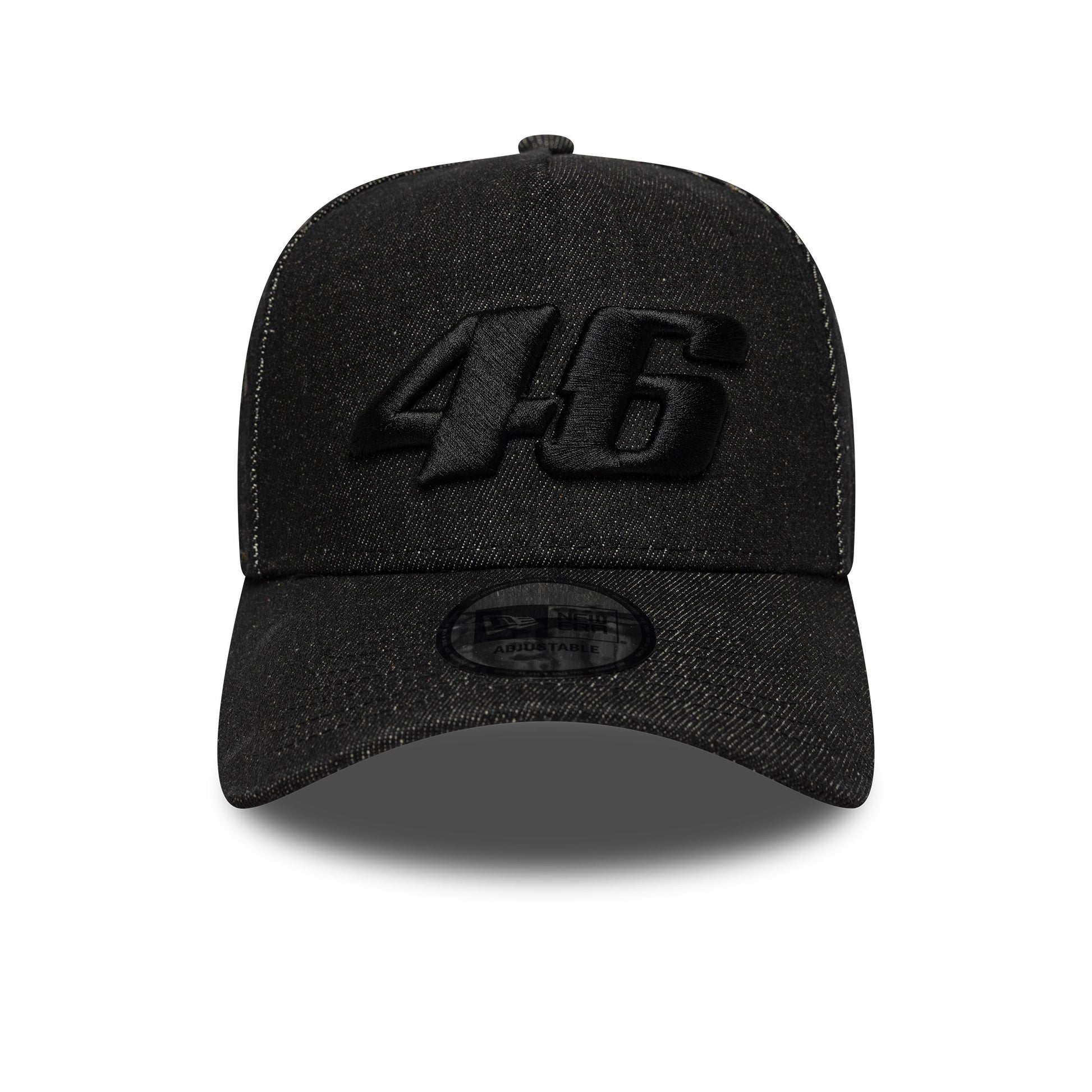 The VR46 Laser Etch Denim Grainy Black Trucker Adjustable Cap combines bold VR46 style with a modern denim twist.